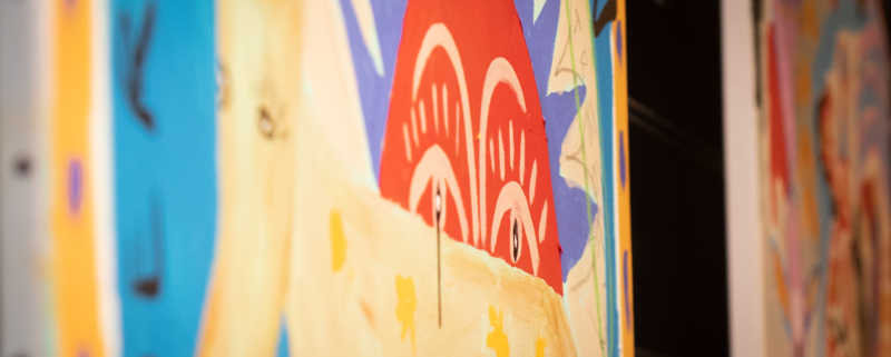 That’s just the way I work. I prepare a canvas and I don’t really know what will happen. I’ll start in one corner and just see what unfolds. Sometime I’ll have a few key words to guide me, but mostly it’s free of expectations. And sometimes it takes days. You can’t tell why, but you know that something is just not working and you have to find a key to unlock the finished painting. It could just be as simple as reversing a color, or adding, or removing an element. But I really love this process. Knowing that it’s just not there and working through it to unlock the finished painting.