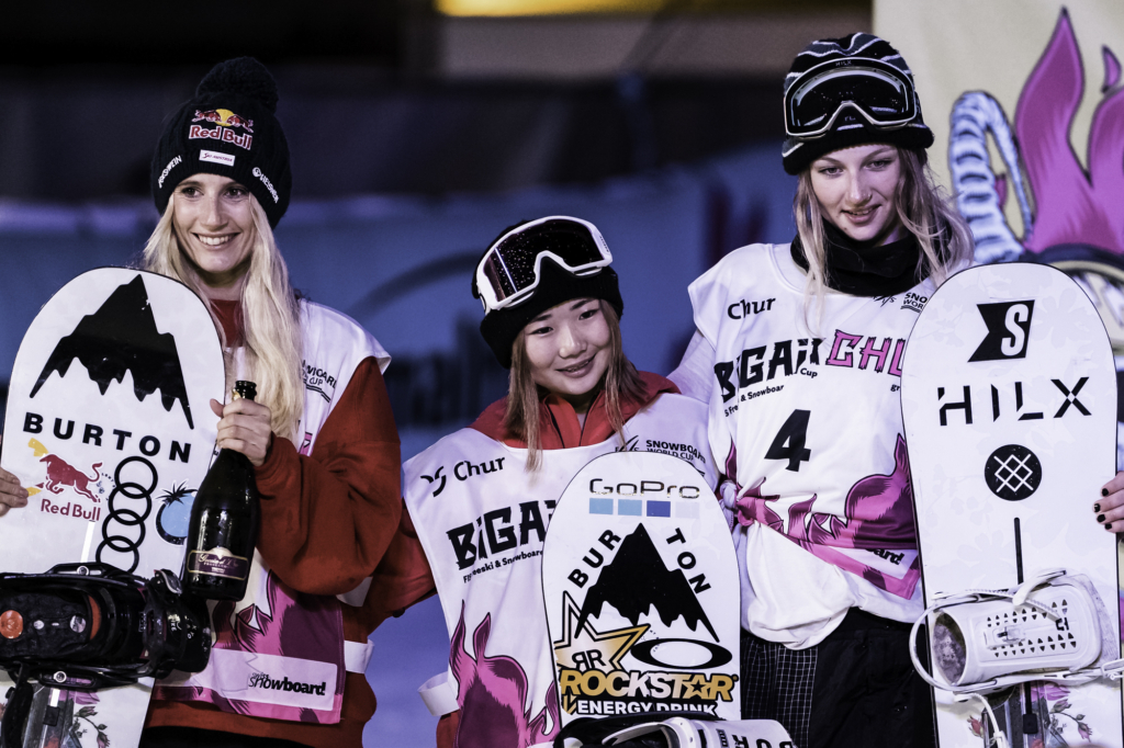 Reira Iwabuchi in 1st, Anna Gasser in 2nd and Jasimine Baird in 3rd by Corsin Näff