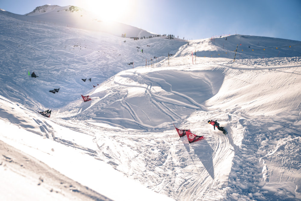 There is a free training session on Saturday for the first time. On the day of the event, there is also a chill area with food and drinks. And apart from the banked slalom you also have a Boardercross and the Fruttpark with over 30 obstacles on the same lift.