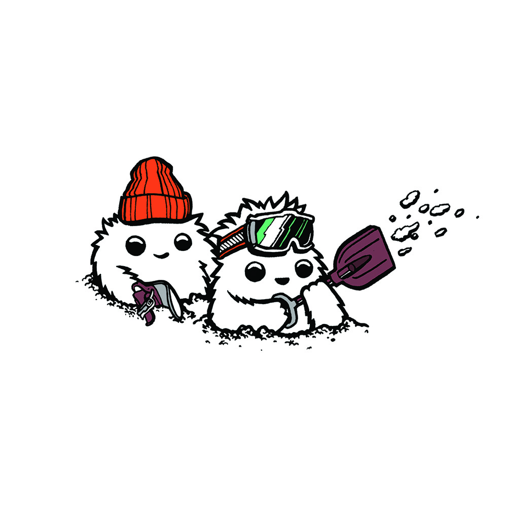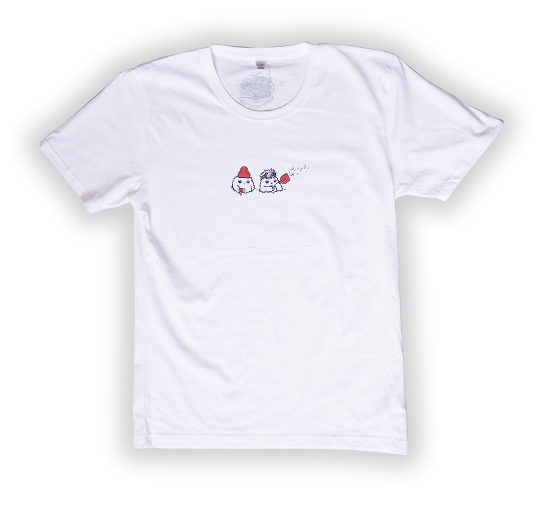 Mike “Aemka” Knobel is pretty much the ideal guy for a project like this since we really can’t decide if he’s got more talent with a snowboard on his feet or a paint pen in his hand. But you probably already know his work because he’s been contributing illustrations to Whiteout for years and has been involved in a lot of art projects in the Swiss snowboard community, ranging from outerwear designs to live painting. However, you might not know all of the stuff that you’ve seen was done by Mike because his style is eclectic… to put it mildly. So we really didn’t know what we’d end up with when we asked mike to design a shirt for us.