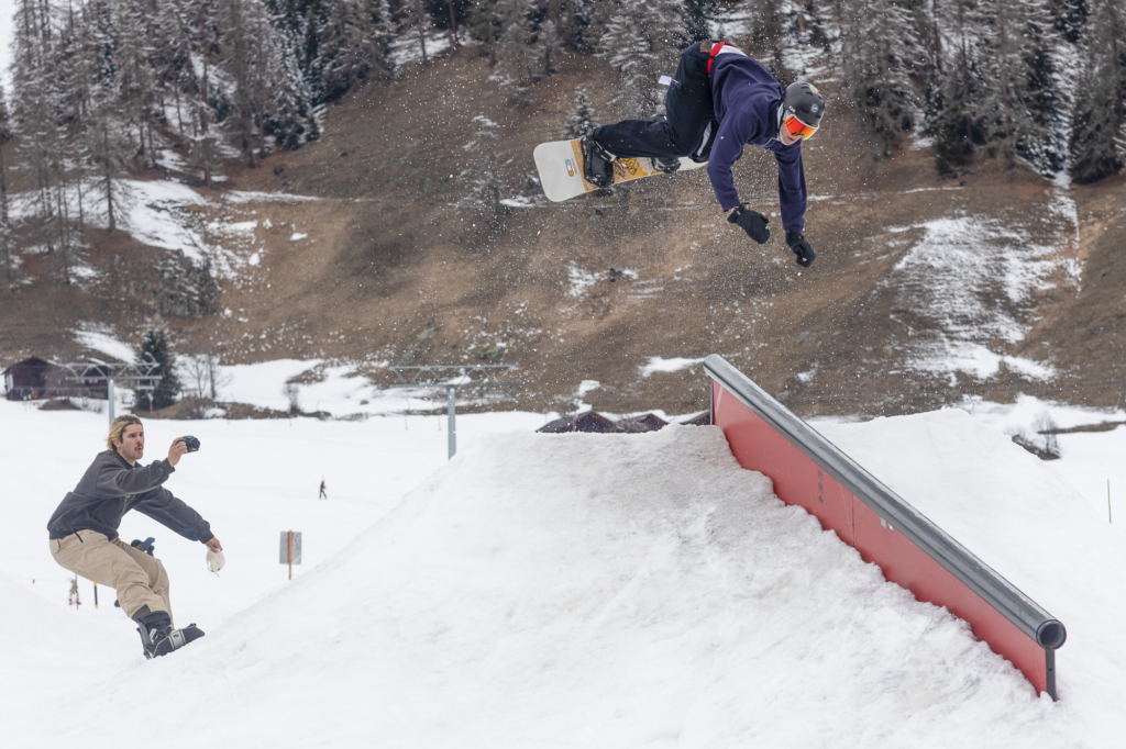 The crew from the Upper Valais teamed up with BME, Arsène Junior “Juni” Page’s CBD brand, to host the RAD x BME Winter Rash in Snowpark Goms. The Park is located in the small village of Gluringen and its base is a convenient 10 meter walk from the main road that passes through the Goms valley. Kuno Egli was on hand and hooked us up with a bunch of photos and a little report. Up first, the action…