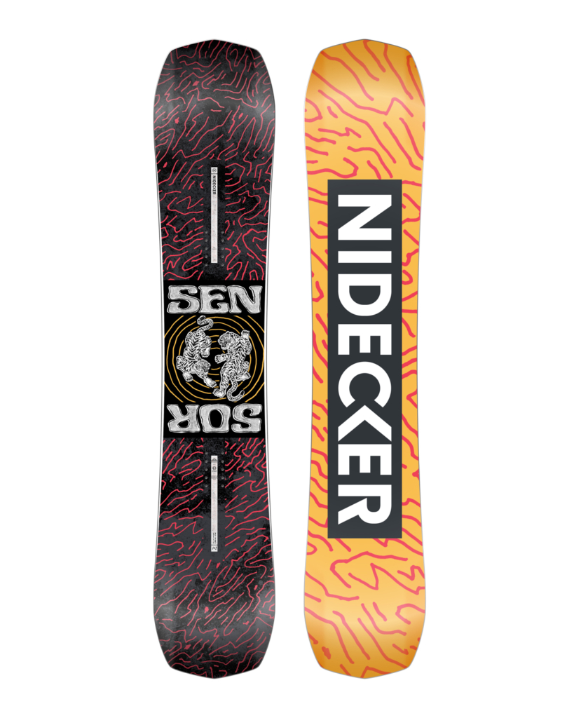 I’m super stoked on Nidecker’s Sensor. It’s a freestyle board that you can use everywhere on the resort and rely on! I ride it with the Supermatic bindings, because they’re so fast and work great for me. They also fit perfectly with the Rift boots, which are super comfortable!