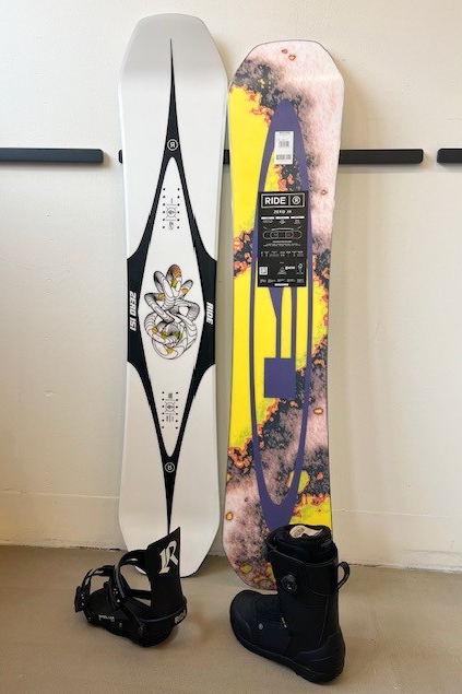 I’m shredding a Ride setup: The Zero with the New Specter Black Binding and the Torrent Boot.