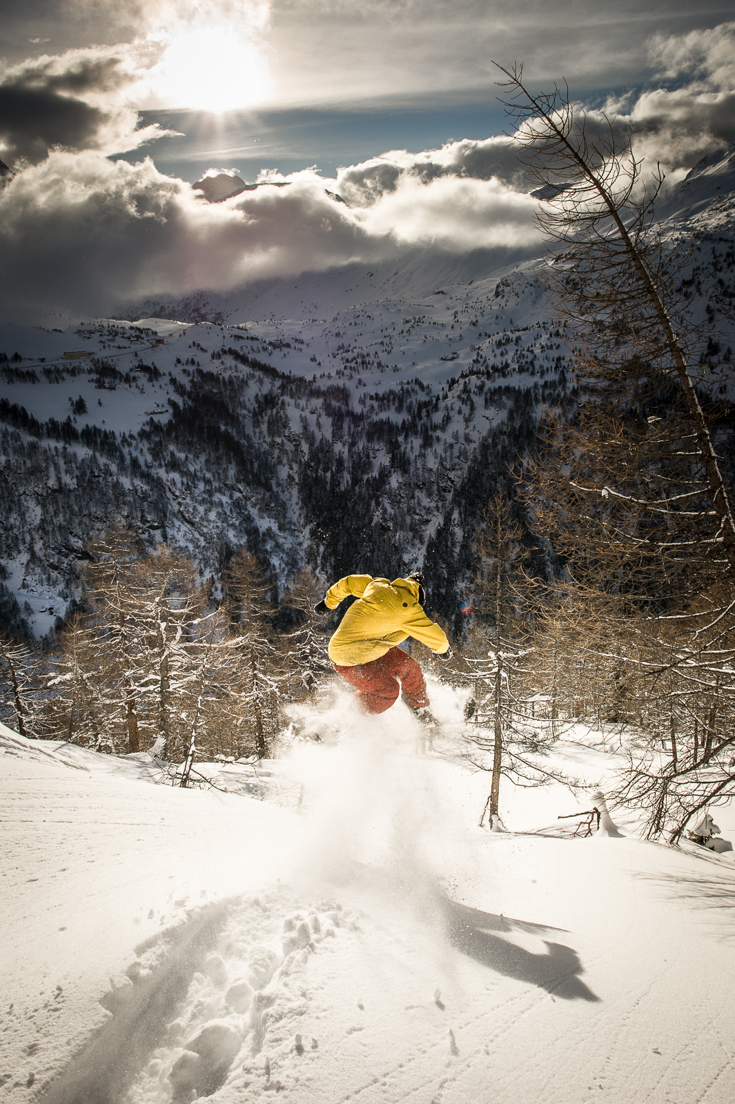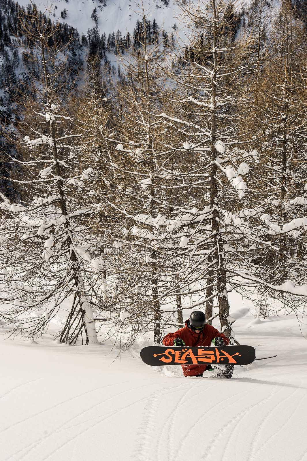 Prali, Italy somewhere in March. It snowed heavy for three days and we arrived on the second day of it. 1m 20cm of fresh snow. It was like snorkeling. Not so easy for shooting but really intense riding it. Hiking just wasn’t possible.