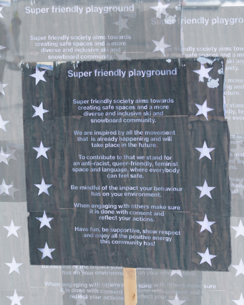 I feel like there might be an opportunity to go a bit deeper on those ideas. Maybe we can go through them one by one? The opener is, “Super Friendly Society aims towards creating safe spaces and a more diverse and inclusive ski and snowboard community.” Hopefully that’s something that everyone can get behind, but I also think that there’s more to unpack here… How can we make our snowparks and events feel more safe, and what are some steps that we can take for increased diversity and inclusion?