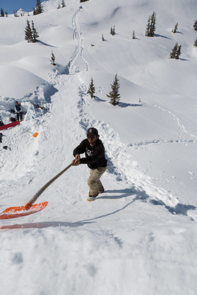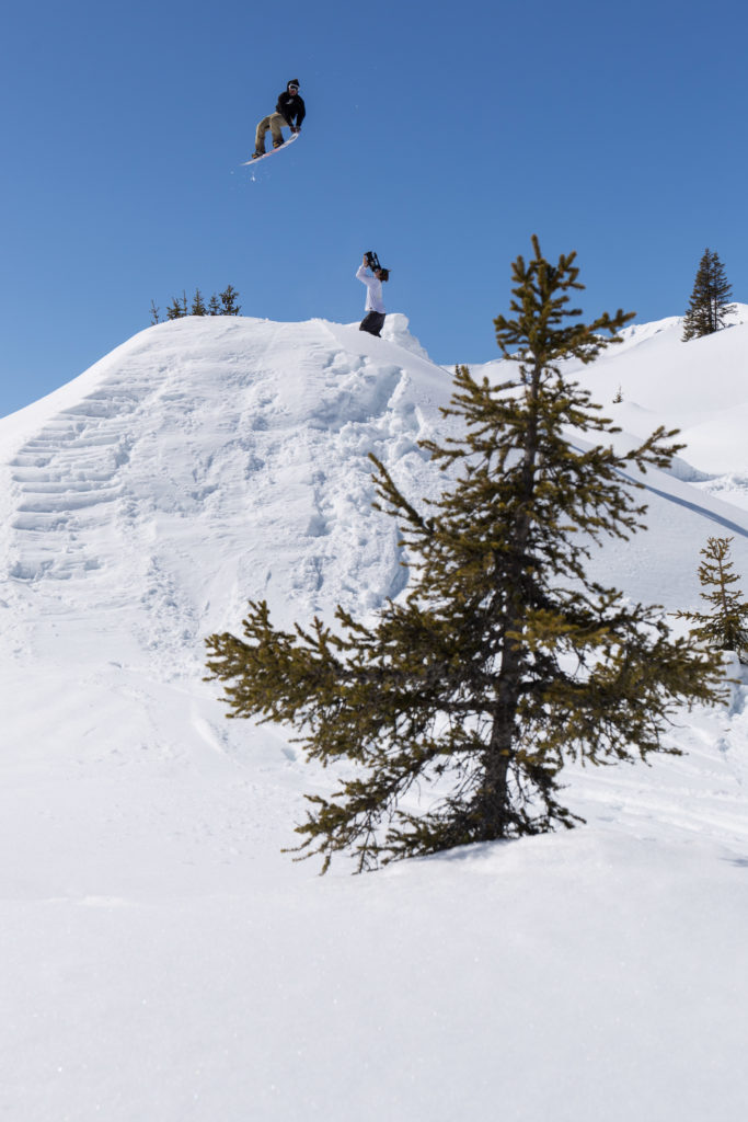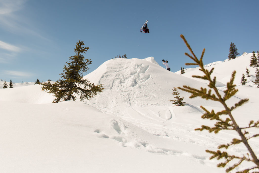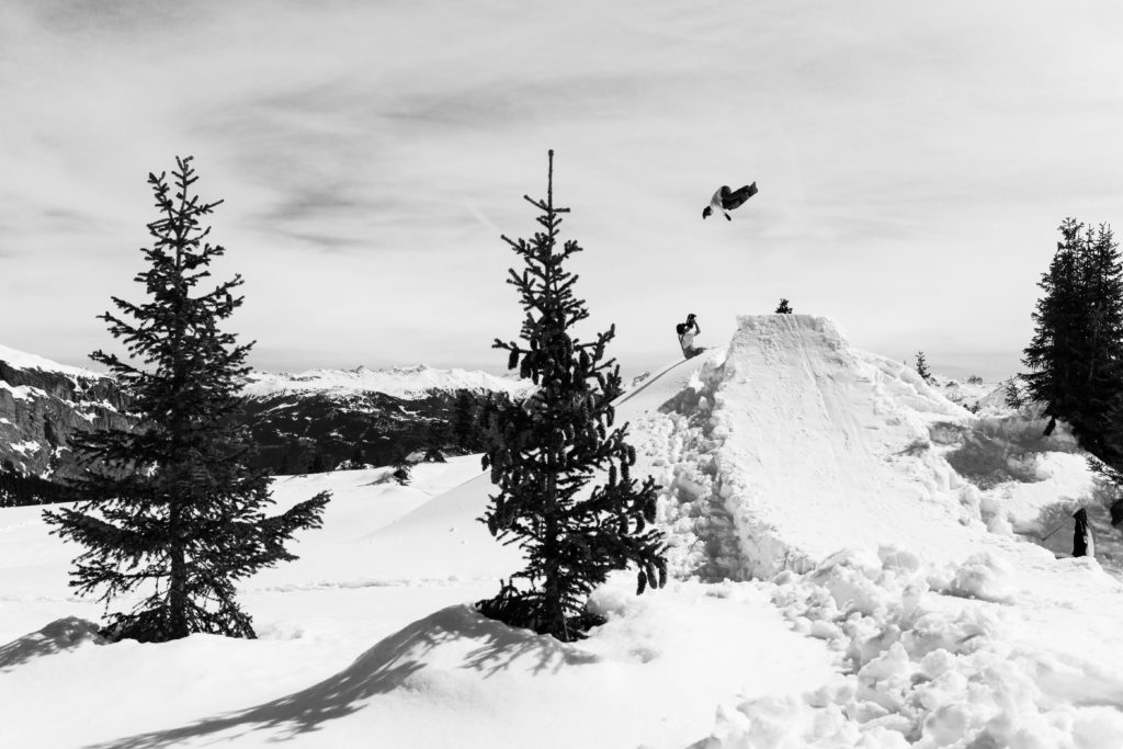 Due to a conflicting shooting on the same day, I was only able to join the crew at lunch time… and I swear this wasn’t just an excuse to skip out on the building of the jump! As you can see from the pictures, it was an impressive one and some serious snow had to be moved. After the first attempt by Florian, it was obvious, that the jump still needed to be bigger. Lou made sure that everyone was doing their assigned shoveling duties correctly. You could really tell that he was applying all of his knowledge that he’d gained from his time with Mindset Productions. But enough words now, here’s a little gallery: