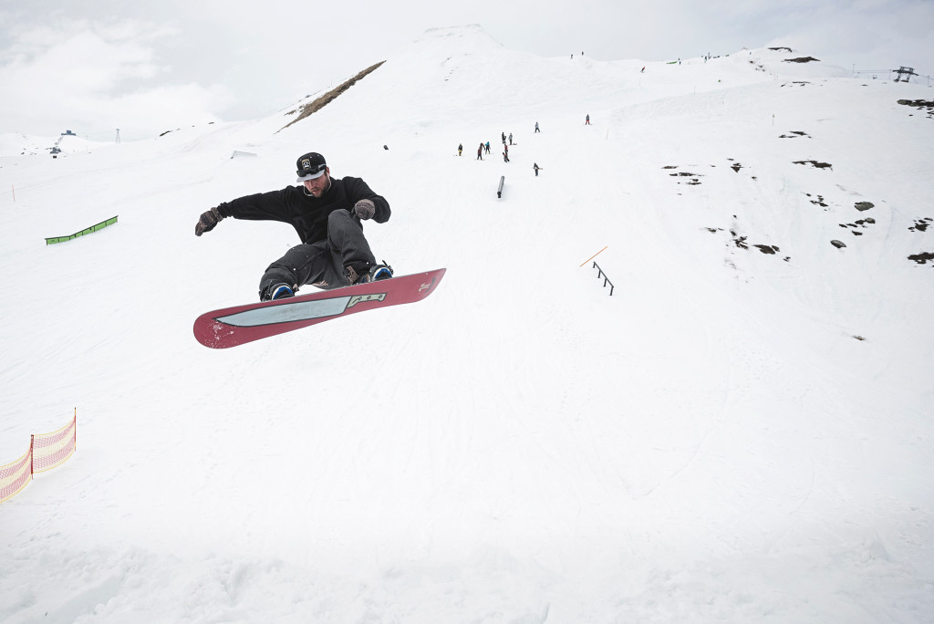 OG Snowpark Laax shaper Joos Caviezel popped some v-steezy ollies out of the quarter.